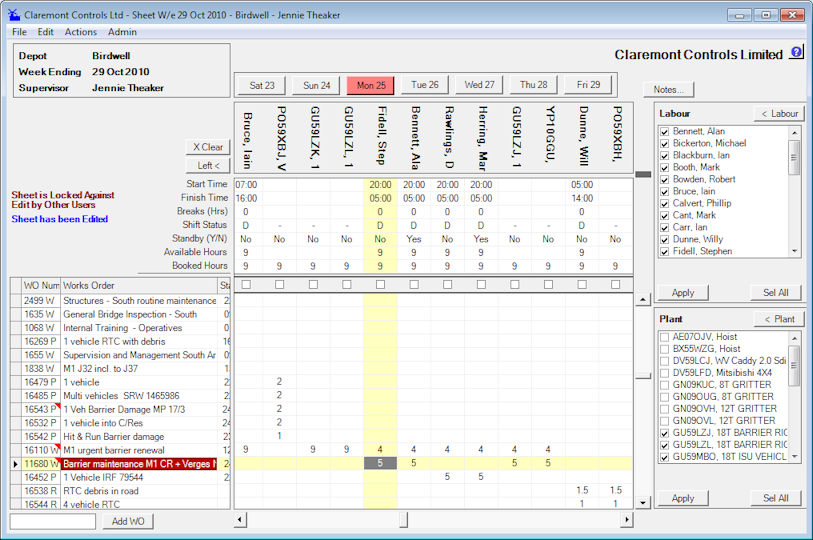 Stock Materials may be Allocated against Works Orders directly from the Labour / Plant Allocation Sheet. Stock Materials Allocations are loaded (and saved) as part of the standard Allocation Sheet operations and can be accessed through the Works Order grid control to the left of the display.