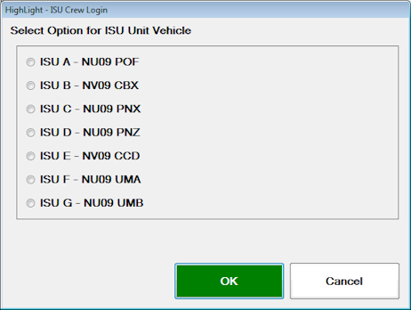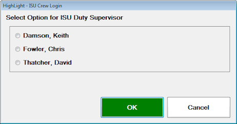 Opening HighLight the following panel is displayed, select the ISU Shift Login button.