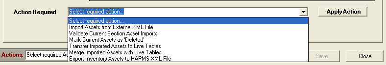 Import Assets Action - Select the required Action from the pull-down selection and click on the Apply Action command button.
