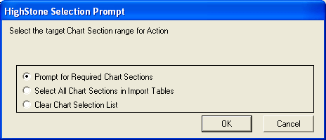 Set Target Sections List… - This command button is used to set the required range of Network Sections that are to be included in applied Import and Export actions run from this panel. The default action is to limit the data processing to the current selected Network Section record only. A prompt panel offers alternative selections: