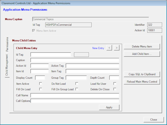 As above, right-click on the relevant parent menu item and select yes to Configure the permissions and then select the Child Management Tab.
