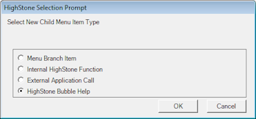 Select the 'Add Child Item' button and then select the HighStone Bubble Help option.