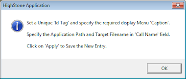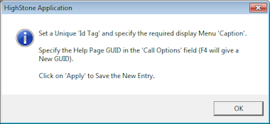 There are two sets of Bubble Helps within HighStone, one uses a PDF file the other uses a series of JPEG files, shown on screen as a slide show. The two methods to create the menu items within HighStone are shown below.
