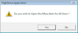 Select the Apply button, at which point the following prompt will appear. If you want this menu item to open for all users, select 'Yes'.