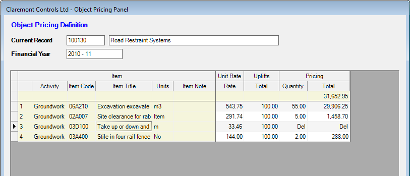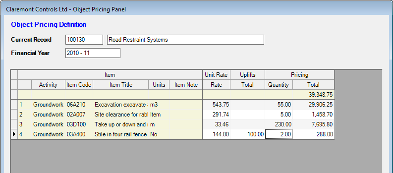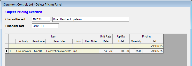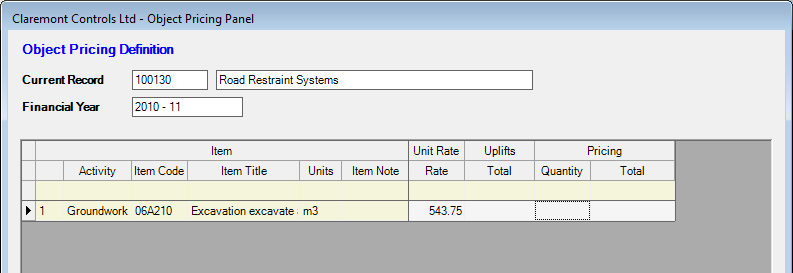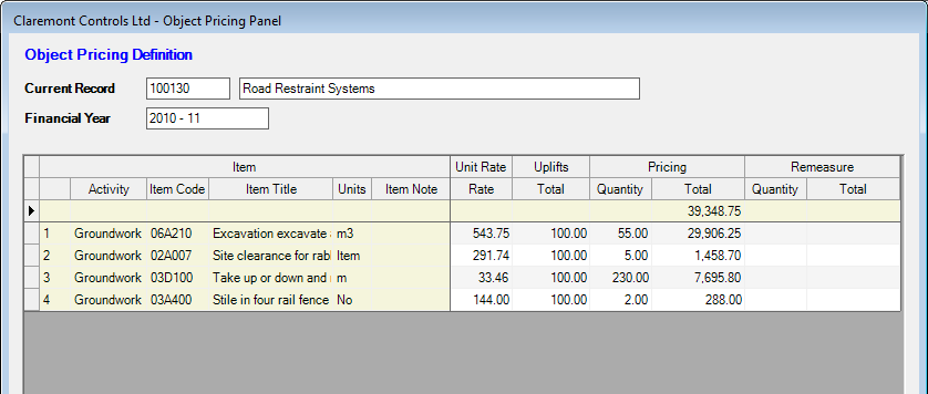 Where the use of Object Pricing involves the requirement to undertake a re-measure to record actual item quantities the values should be entered in the relevant Quantity column to the right of the display.