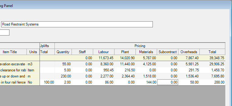 To view the Cost Heading analysis behind the gross Item Price values double click in the Pricing grid cell.