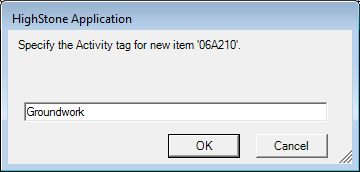 HighStone will always take the Activity Tag from the current selected row on the underlying items grid as the default when adding new items. This allows the user divide a large pricing schedule in to a range of distinct blocks and sections.