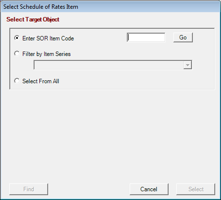 The Select From All option will list all source item records from the Schedule of Rates table in the grid display panel.