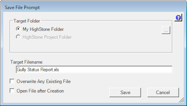 If saving Grid Data to replace an existing filename, for example a re-run of a report, you must ensure the previous file is not Open in another Application on your Desktop - or Open by another user.  There is no need to delete a file before HighStone will create a new version, but the save will fail if the existing file cannot be deleted for any reason.  The same applies if a file has been marked as 'Read-Only' - HighStone will not over-write any 'Read-Only' file.