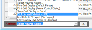 When multiple records are selected, the record details may be printed to PDF from the Actions drop-down for those records highlighted. This facility is available against all list logs.