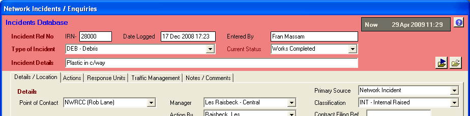 The sample here is for a Network Incident - other Event Records under a different Primary Source Classification will show different banner colour. The actual Primary Source is shown in the top right of the Details / Location tab area.