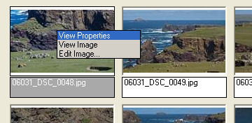 From the Thumbnail Image List, the RMB (Right Mouse Button click) displays Actions for the selected image file.