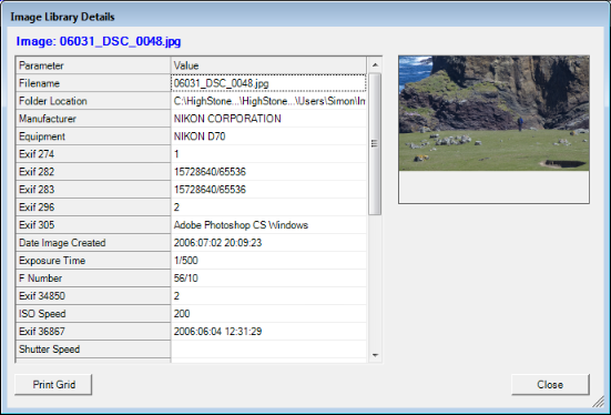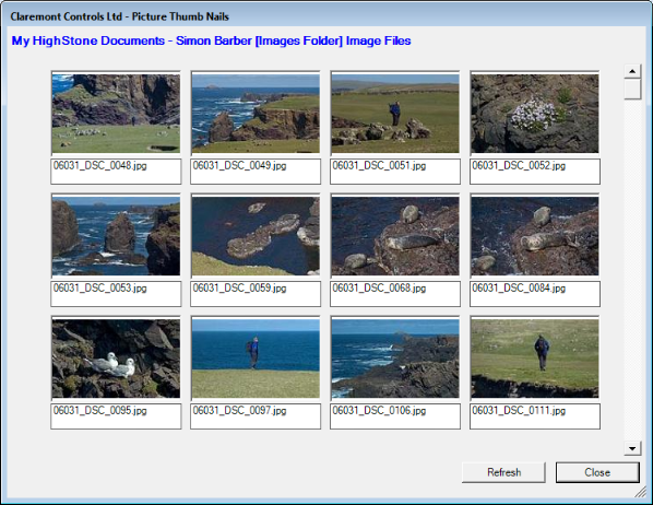 If the target My HighStone Documents folder contains Image Files (typically .jpg camera images) the View Folder Image Files action will display a panel of image thumbnails.