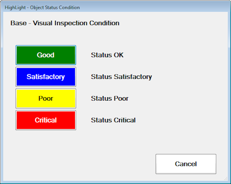 If Poor or Critical condition is selected, HighLight will prompt the user for more specific information.