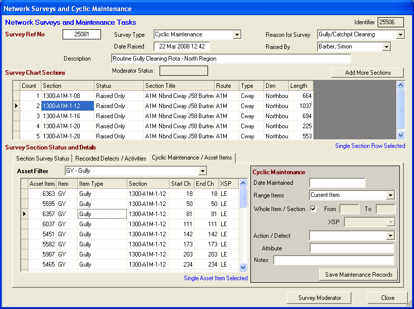 All Section Records Only - Sets the entry against all Listed Current Network Section (the entry is not allocated to an Asset Item).