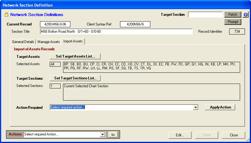 Prompts are given as the selected Actions are processed. Please be aware that processing large data files / large numbers of Network Sections will involve the moving of a large number of Assets records within the host database. Processing may take a significant length of time to complete; HighStone gives a confirmation prompt at the completion of each task.