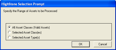 Select Asset Classes - Offers a multi-item prompt panel allowing selection specific Asset Classes (groups of Asset Types).