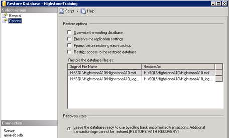If you are copying the live database over the training a SQL script is available to run to ensure that once copied application points to training rather than live database.  If on server: H:\Claremont_Controls\for_PB  OR  \\aone-sbs-db\R:\Claremont_Controls\for_PB